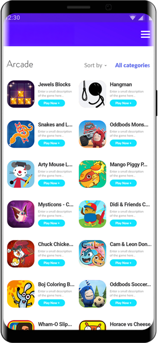 Play 250+ games from a variety of categories including action, adventure, family, casual, puzzles, cards, sports, strategy, education, just to name a few. Titles include Oddbods Monster Truck, Dumb Ways to Die 3 – World Tour, Mysticons – Choko Says, Horace vs Cheese, Arty Mouse Coloring Book, and tons of more exciting and entertaining games.